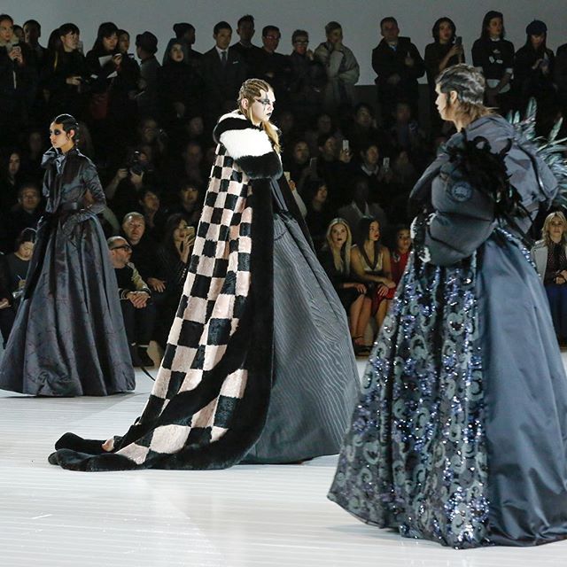 Con los ojos y labios muy oscuros, ondas en el pelo (estilo años 20) y unas plataformas de vértigo, las modelos caminaron por la pasarela dejando sorprendidos a todos los asistentes, entre ellas, Anna Wintour. La puesta en escena era muy sobria, dando protagonismo a cada prenda y complemento.